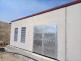 En esta imagen podemos ver una caseta destinada para guardar un equipo de bombeo en unas instalaciones de regadío con grupo electrógeno por si falla la electricidad, con la característica de que es panelable por su tamaño se transporta desmontada y se ha colocado sobre una solera de hormigón fabricada in situ previamente, al tener más de tres, cinco metros de anchura la cubierta se ha hecho inclinada de panel sándwich a un agua, posee una puerta metálica y rejillas de ventilación para la refrigeración de los motores.