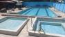 Propiedad que incluye jacuzzi, piscina carrilera para nadar y piscina infantil, todo construido con azulejo cerámico. Está rodeado por un muro de privacidad de cemento de 2.5 metros de alto con una gran entrada con portón.