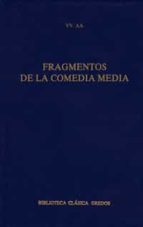 El término de Comedia media se emplea para designar la comedia ateniense del período 400-323 a. C., el que sigue a la época marcada por la gran figura de Aristófanes. Las obras de la Comedia media se han perdido prácticamente en su totalidad y no nos quedan más que fragmentos de ellas, los que en esta cuidada edición se presentan. Fue éste un momento de experimentar nuevas fórmulas, con la reducción drástica del papel del coro y la desaparición de los símbolos sexuales de la vestimenta de los actores. Estos autores (Aristofonte, Calicles, Timocles, Mnesímaco, Jenarco, Sótades, Alexis, etc.) suponen una transición del género de la comedia desde las cotas alcanzadas por la Comedia antigua hasta la aparición de la Comedia nueva, representada en la figura de Menandro. La edición de estos fragmentos es de excepcional interés para trazar la línea evolutiva de las formas teatrales griegas, que llega hasta autores como Plauto y Terencio, que, con el paso de los siglos, serán los modelos de Molière o Lope de Vega.