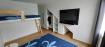 • 2 dormitorios con 2 camarotes (4 personas por dormitorio) con colchones de 1 ½ plaza.